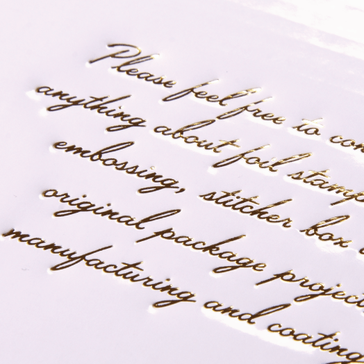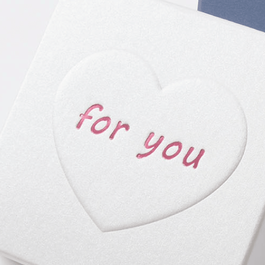 伝統的な金箔、銀箔に限らず、顔料、ホログラムなど、箔押しは色もきらめきも多彩に進化しています。商品コンセプトやパッケージの材質・デザインに合わせてさまざまな表現が可能で、色や種類を組み合わせることもできます。箔押しは、作成した版を機械にセットし、紙をプレスすると同時に箔を熱転写させる加工で、位置の合わせ方や素材の質や厚みに「熱」「圧力」「箔の種類」など微妙な加減が仕上がりに影響します。当社では長年、箔押し一筋に歩んできた職人が、細やかな工夫と熟練の手技で細部にまでこだわった美しい仕上がりを実現。高品位な技術と品質管理によって、お客様の信頼を得ています。